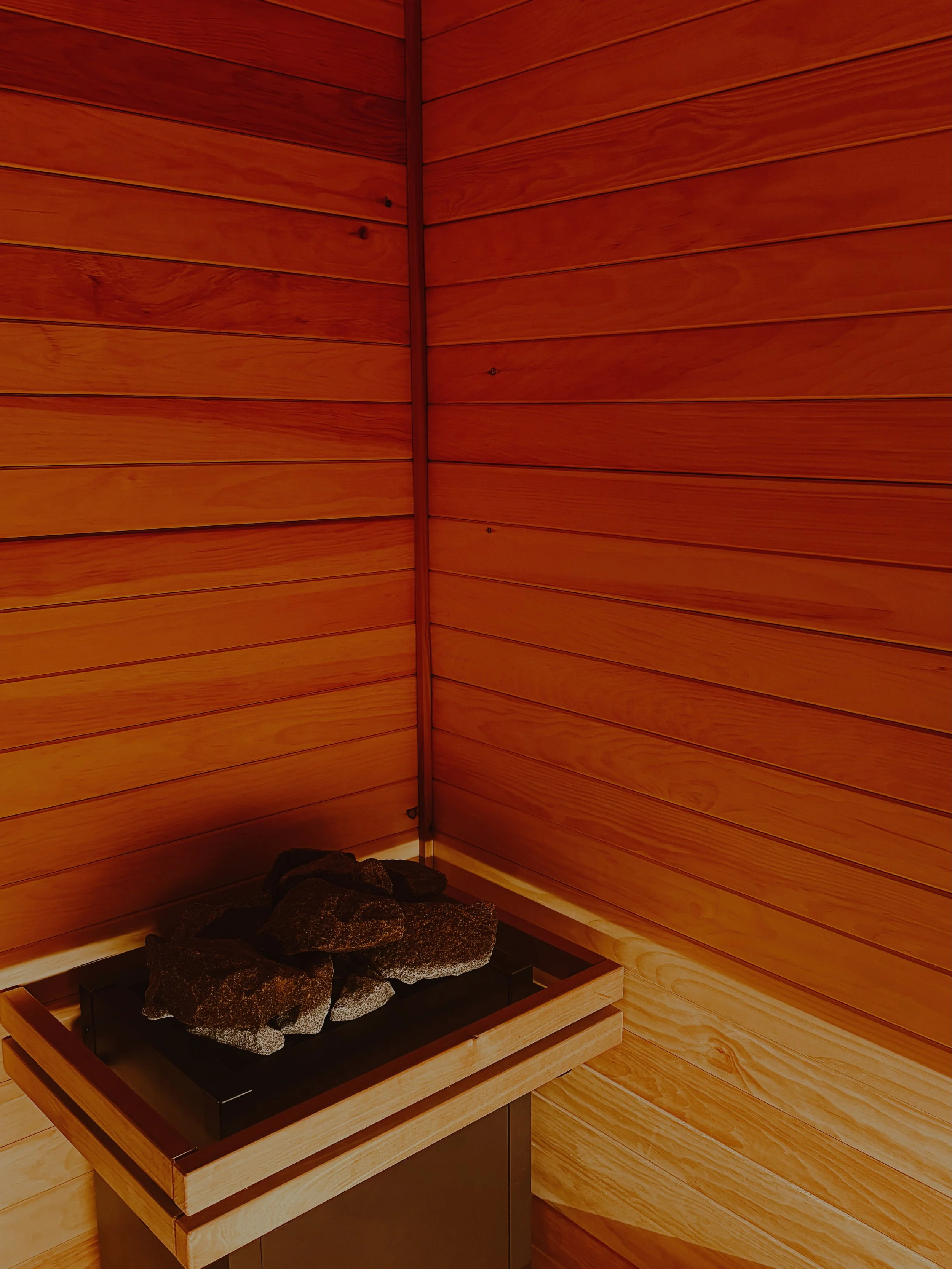 A quiet corner for recalibration. Our recovery lounge includes private access to a traditional Finnish sauna and cold plunge - designed to support circulation, reduce inflammation, and restore your nervous system.
